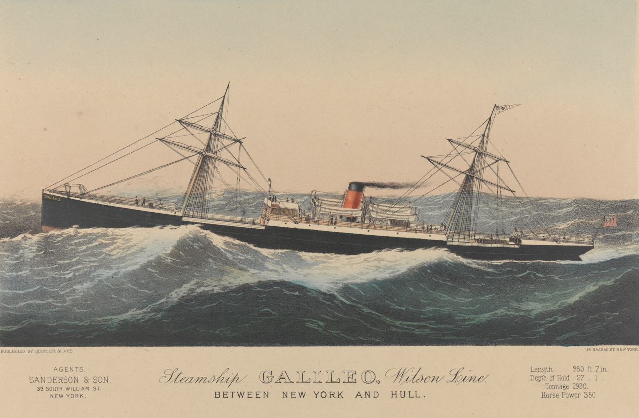 Mas então qual era sua maior função? O transporte de carga. O Galileo era capaz de acomodar mais de duas mil novecentos e noventa toneladas, com um funil, dois mastros e uma hélice simples proporcionando uma velocidade de 12 nós, pouco mais de vinte quilômetros por hora.