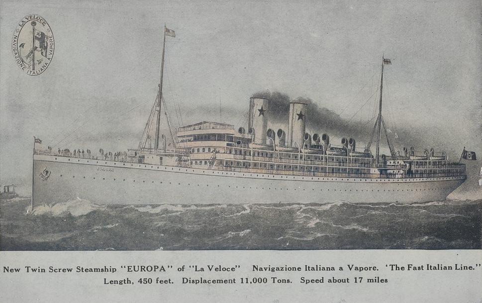 O gigantesco Europa foi produzido no ano de 1907 pela indústria naval italiana Cantieri Navale Siciliani, utilizando turbinas da Ansaldo, Armsttrong & Co e Sestri Ponente, sob encomenda da companhia navegadora da cidade de Genova La Veloce.