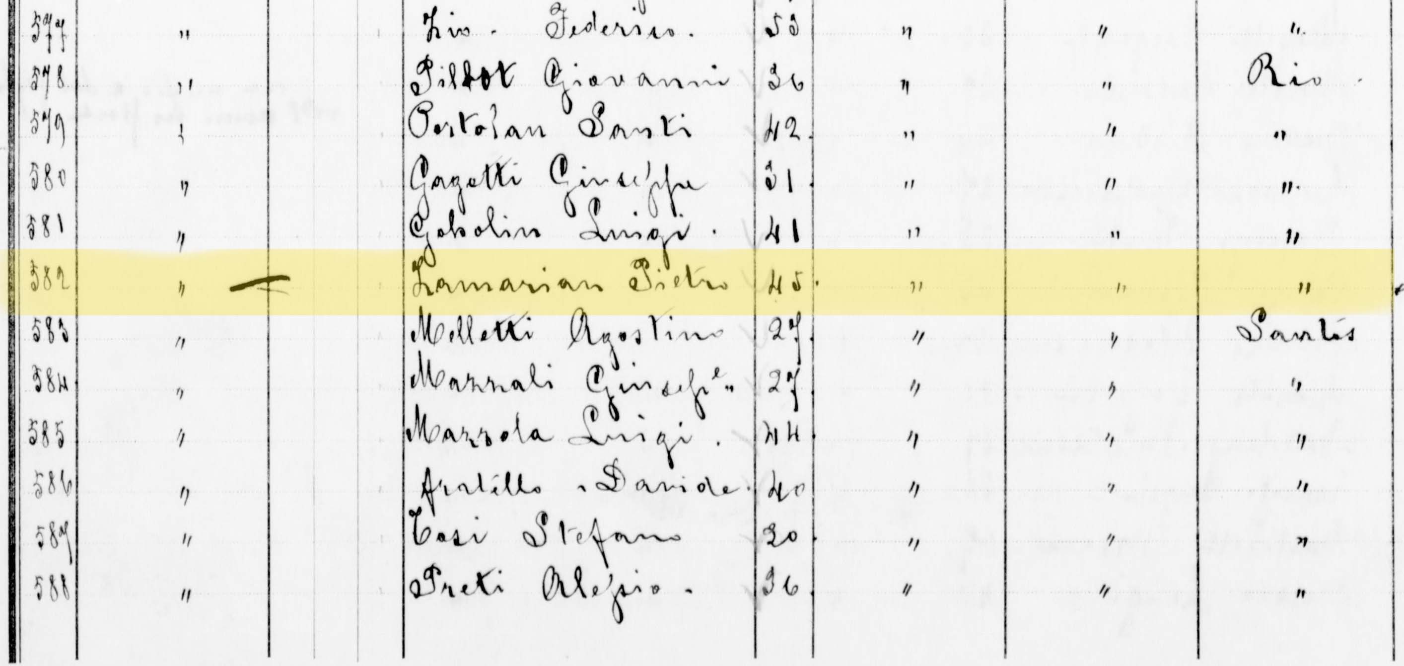 Registro de chegada ao Rio de Janeiro de Pietro Zamarian