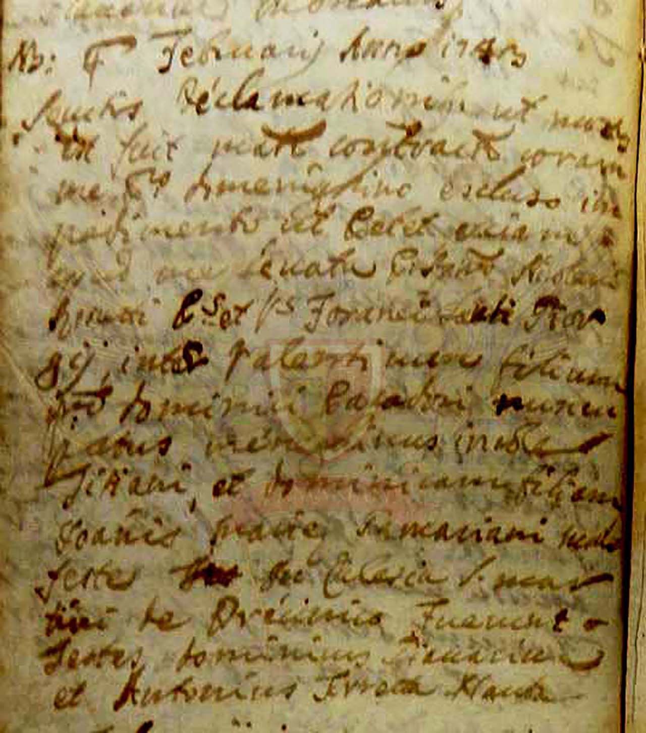 O Sacramento matrimonial foi celebrado pelo pároco Domenighino sem nenhuma objeção ao ato contraído entre Valentino filho do finado Domenico Pasadore de Titiano, originários de San Giorgio de Nogaro e Domenica filha de Joanis Marie Zamariani oriundos de Malafesta, pertencentes a paróquia de San Martino de Precenicco. Presentes Domenicus Piazza e Antonia Teresa Nardon.