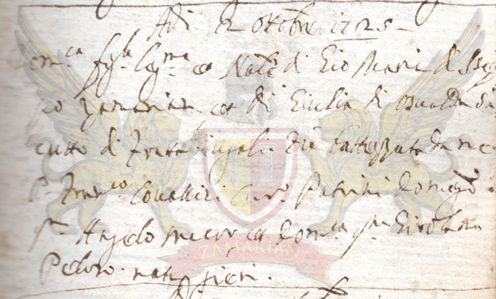 Domenica filha legítima. Nascida de Gio Maria filho de G. Iacopo Zamarian e de Giulia filha de Osvaldo Sicutto de Fratta igualmente. Foi Batizada por mim Pároco Francesco Covassini Curador. Padrinhos Domenico filho do finado Angelo Macor e Domenica filha do finado Girolamo Peloso. Nascida ontem.